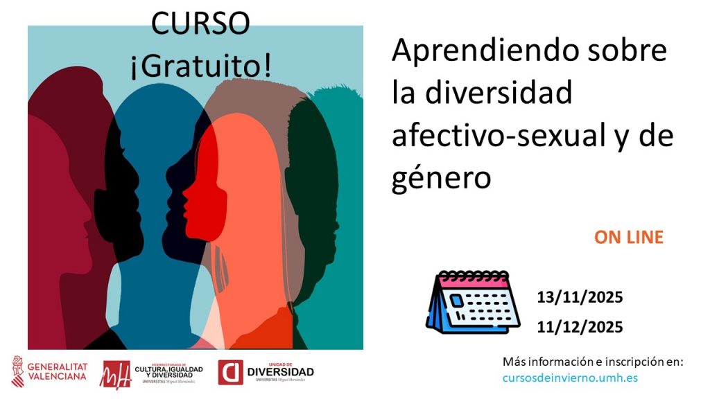 Desde la Unidad de Diversidad invitamos a toda la comunidad universitaria a participar en estos cursos, diseñados para seguir construyendo una UMH más informada, respetuosa e inclusiva.