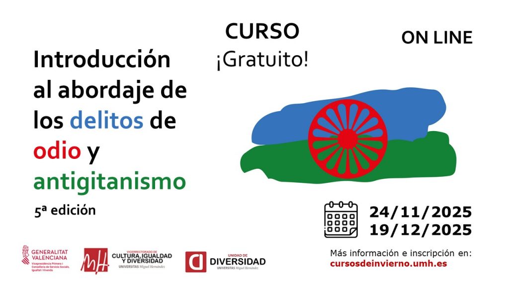 La Unidad de Diversidad de la Universidad Miguel Hernández de Elche (UMH) impulsa, un año más, la formación en igualdad, derechos humanos y convivencia a través de dos cursos de invierno centrados en la diversidad afectivo-sexual y de género, así como en la prevención y abordaje de los delitos de odio y el antigitanismo.